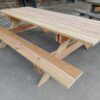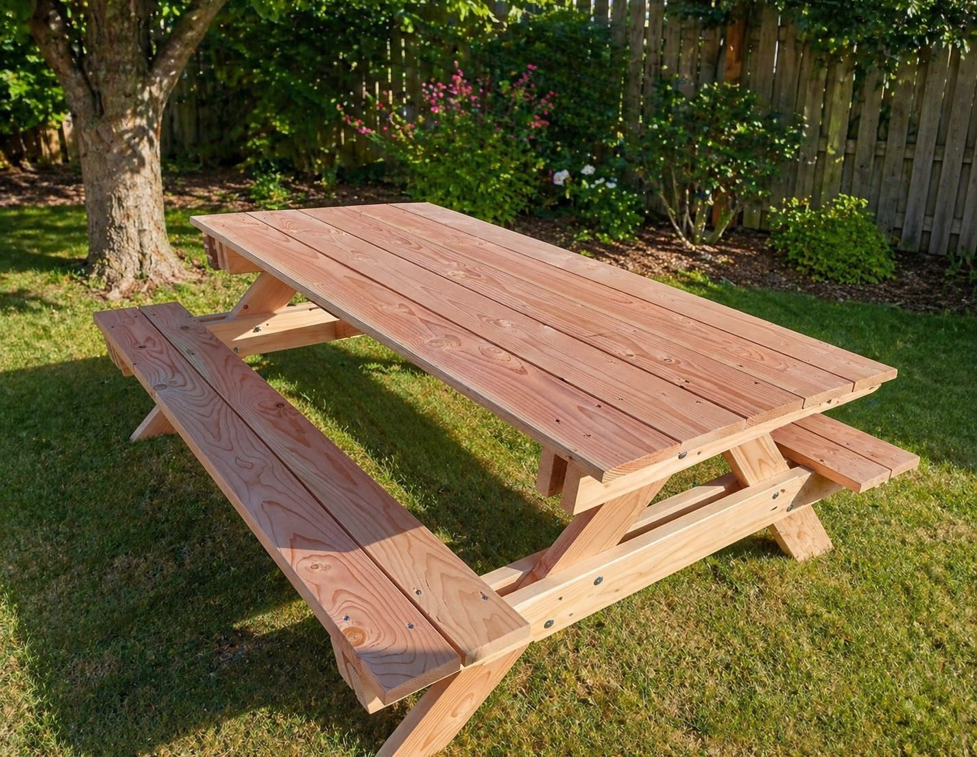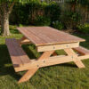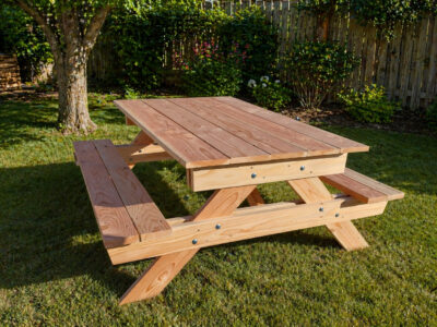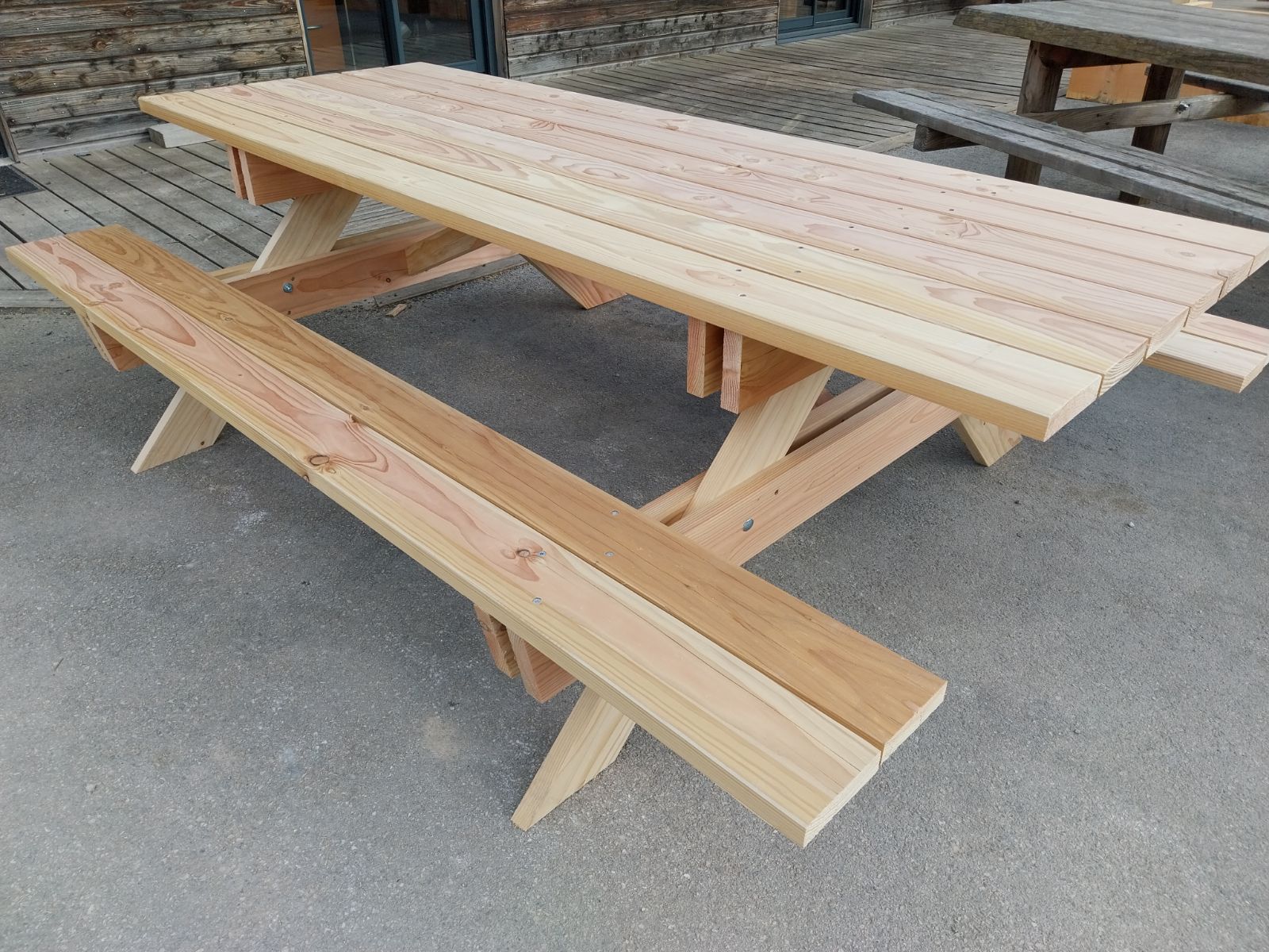Table de pique-nique de style bûcheron en Douglas massif, sans traitement, mettant en valeur l’aspect naturel du bois. Le Douglas, naturellement durable (classe 3), offre une bonne résistance aux conditions extérieures tout en conservant une esthétique chaleureuse et authentique. Livrée en Kit à monter.